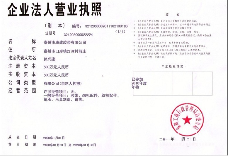 泰州市康建膠帶有限公司經過十多年的發展已經成為一家從事輸送帶和傳動帶類及相關設備生產和銷售的公司。位于中國經濟發達的長三角經濟圈江蘇省泰州市高港區,交通發達。我司以“合格的產品,滿意的服務”為宗旨,發揚團結、開拓、拼搏爭先的創業精神,“康建”在全國行業樹立了良好的企業形象。“康建”產品已通過ISO9001國際質量體系認證,從原料﹑工藝等方面進行了嚴格的控制,從而確保了產品質量的穩定可靠,成為各......